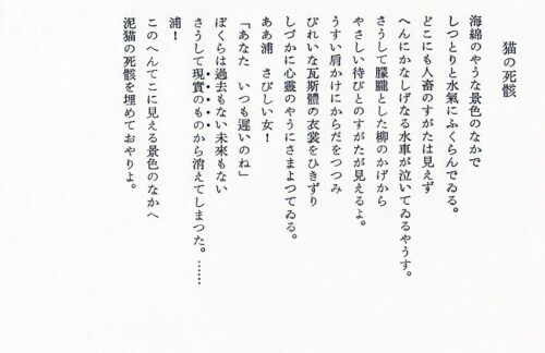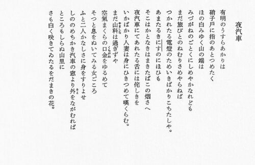 “Photo Poem Trunk” 2023.07.122026.03.18 花と新緑の季節を散歩 2026年4月14日 詳細ページ 「夜汽車」(萩原朔太郎) 2026年4月14日 詩集『純情小曲集』/那珂太郎「萩原朔太郎詩私解」 詳細ページ 鋸山(千葉県)1969 2026年4月13日 詳細ページ 「猫の死骸」(萩原朔太郎) 2026年4月13日 『青猫』以後/那珂太郎「萩原朔太郎詩私解」 詳細ページ 「荒寥地方」(萩原朔太郎) 2026年4月10日 『青猫』以後/那珂太郎「萩原朔太郎詩私解」 詳細ページ 大福山・梅ケ瀬(千葉県)1969 2026年4月9日 詳細ページ 12345678910 12345678910