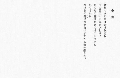 “Photo Poem Trunk” 2023.07.122026.03.18 「金魚」(萩原朔太郎) 2026年4月18日 詩集『純情小曲集』/那珂太郎「萩原朔太郎詩私解」 詳細ページ 花と新緑の季節を散歩 2026年4月14日 詳細ページ 「夜汽車」(萩原朔太郎) 2026年4月14日 詩集『純情小曲集』/那珂太郎「萩原朔太郎詩私解」 詳細ページ 鋸山(千葉県)1969 2026年4月13日 詳細ページ 「猫の死骸」(萩原朔太郎) 2026年4月13日 『青猫』以後/那珂太郎「萩原朔太郎詩私解」 詳細ページ 「荒寥地方」(萩原朔太郎) 2026年4月10日 『青猫』以後/那珂太郎「萩原朔太郎詩私解」 詳細ページ 12345678910 12345678910