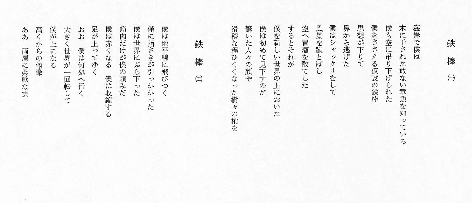 「鉄棒」(村野四郎) 村野四郎 2026.02.02 詩集『体操詩集』/「村野四郎詩集」(彌生書房「世界の詩」) 「罠」より(村野四郎) 「体操」(村野四郎) 「鉄棒」(村野四郎) 「棒高飛」(村野四郎)
