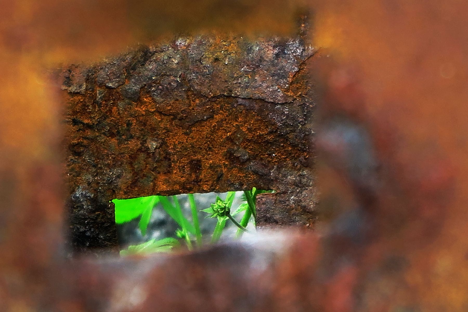錆 → 四角 → 緑 → その向こう(見えない)