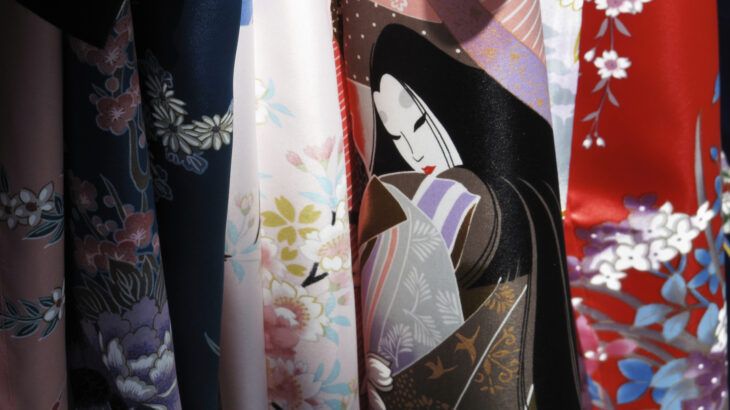 光の入り方も絶妙で、絹の質感や柄の立体感が美しく浮かび上がっています。