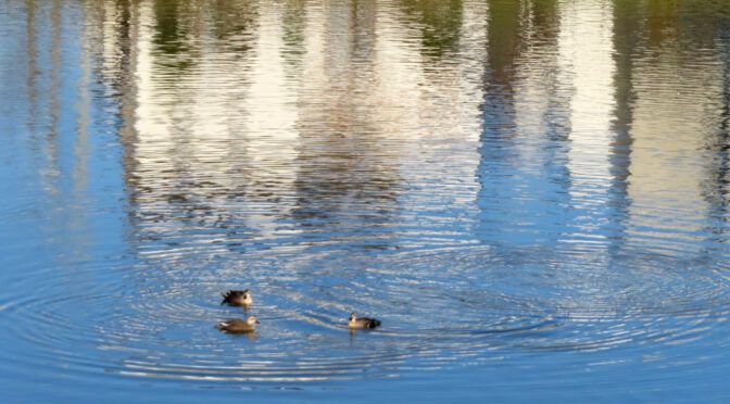Photo Life 平和台駅まで散歩(にしひらい水鳥の池) 2025年11月22日 ken2s 2025-11-22 絶好の散歩日和になったので平和台駅まで歩いた。「にしひらい水鳥の池」で立ち止まってちょっと写真を撮る。青い空と白い建物の水面反射がとても奇麗で、そこにちょうど水鳥がいた。