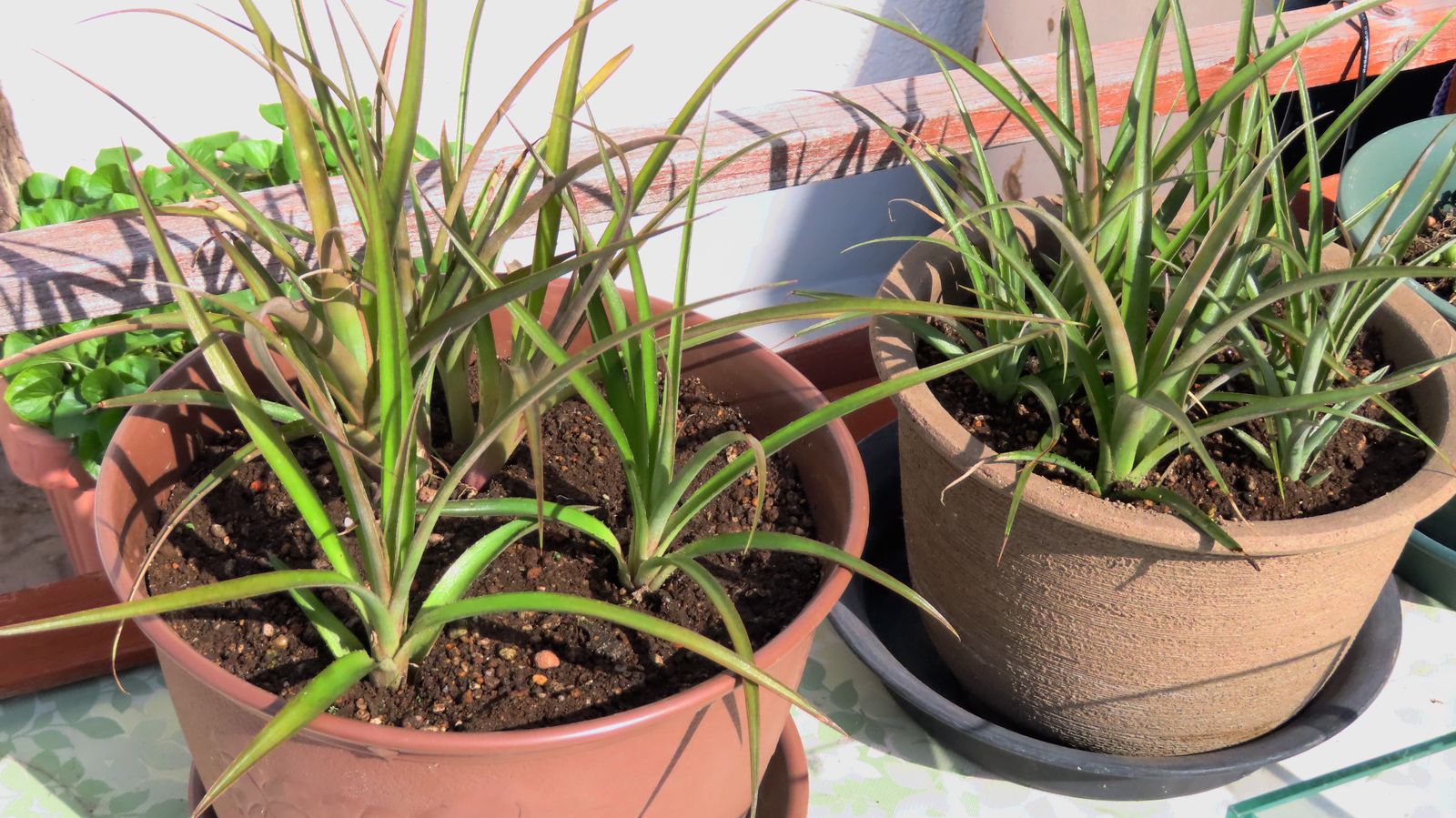 チランジアの植え替えが終わりました。チランジアにも種類があるようです。 育て方のポイントは、直射日光を避け、明るい場所で管理し、風通しの良い環境で水やりを行うことのようです。 エアプランツなのに我が家のチランジアは土に植え、真夏も真冬もベランダです。それでも花はきれいに咲いて、増えていきます。