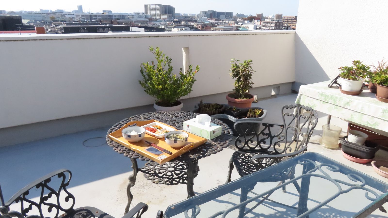 Photo Life 冬の暖かなベランダで 2025年11月15日 ken2s 2025-11-15 快晴で風もあまりなくて冬のベランダとしては最高。池の手入れをして、昼食をベランダで食べた。昨日のおかゆの残りと、退院祝いでもらった にゅうめん、それと腎臓病の宅配おかず。当然めんのスープは飲まない。体調は、というと疲れがあるのか天気ほどよくはない。