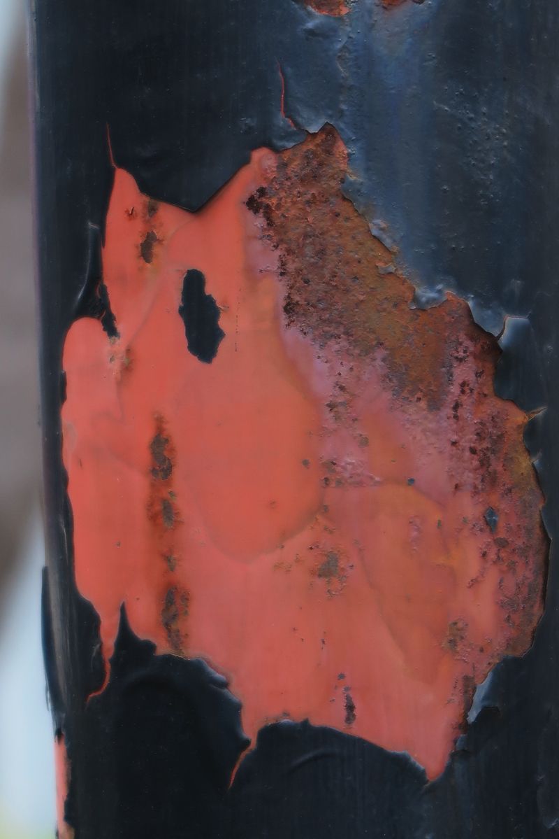 錆びた鉄や焦げた塗膜が、ふいに“顔”みたいになる瞬間ってありますね。
