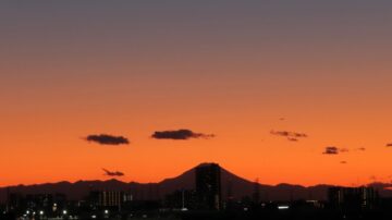 夕焼けに富士山のシルエット