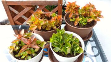 カランコエの葉が赤くなってきたので、鉢を綺麗にして夜は室内に入れることにした。