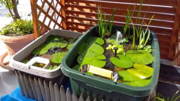 ベランダビオトープ親子池を少し移動する