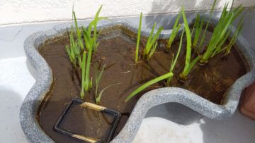 新たに注文したソーラー噴水ポンプが届いた。いま使っているソーラー噴水ポンプよりもソーラーパネルが大きくて強力。噴水が高く上がるので風があると池の外に飛んでしまう。(2023.08.16) 今では流しのゴミネット3枚を被せ […]